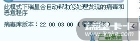 瑞星软件版本:程序版本22.00.00.94和病毒库版本22.00.03.00