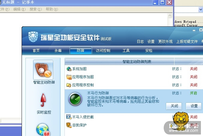 2.关闭所有监控,只开启木马行为防御,测试是否报毒。