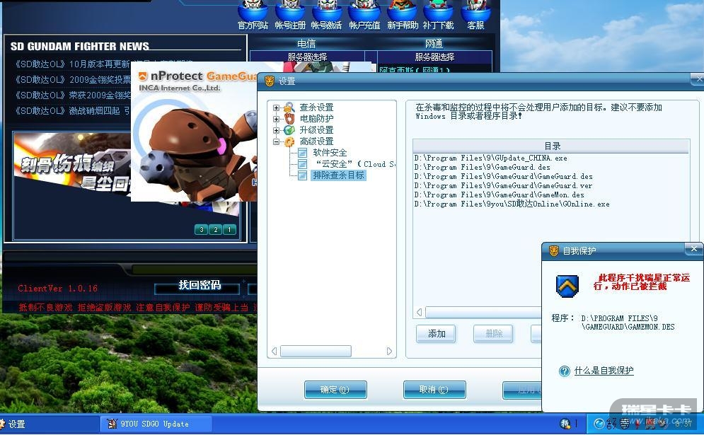 瑞星卡卡安全论坛企业产品讨论区瑞星2010新品体验挑战专区 2010和gamemon.des冲突,关闭监控+添加白名单皆无效