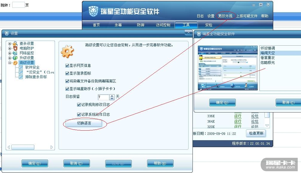 瑞星2010新品体验4RIS语言切换和“外观设置”的整合