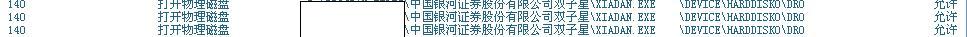瑞星10版磁盘文件访问控制跟中国银河证券双子星在线交易有问题,在打开中国银河证券双子星在线交易软件并输入帐号、密码等并且按确定后,瑞星监控框出现,但是上面没有字如图,