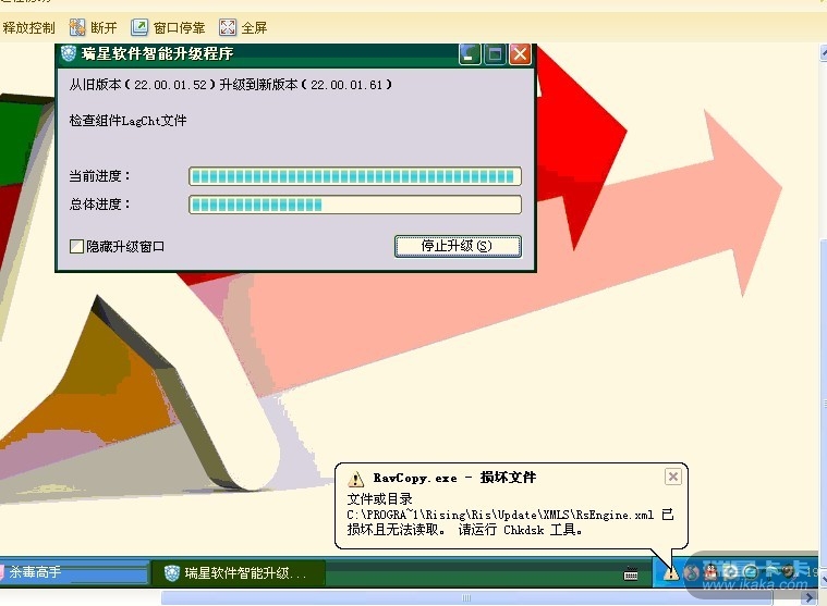 瑞星软件文件出错chkdsk之后