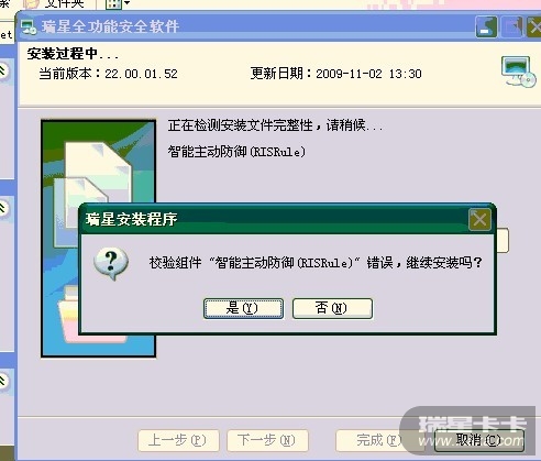所以关闭自我保护删除掉了%RIS%里的所有文件,然后修复瑞星软件,更改目录到了D盘,但是升级的时候仍然提示升级C盘的瑞星,还是提示复制到C盘的目录中。
