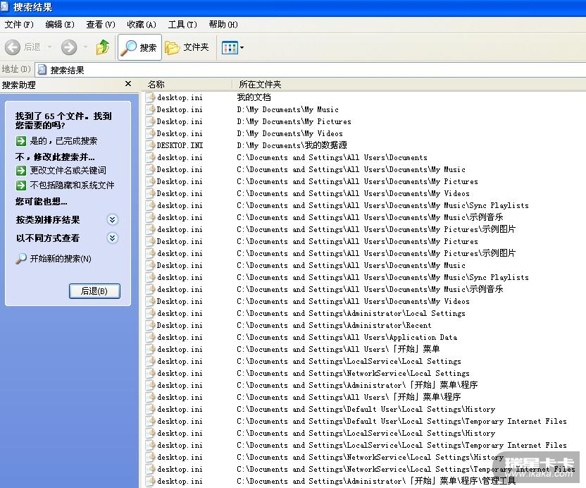 看看我自己的系统内搜索出的这些系统自身的Desktop.ini文件,量很大哟