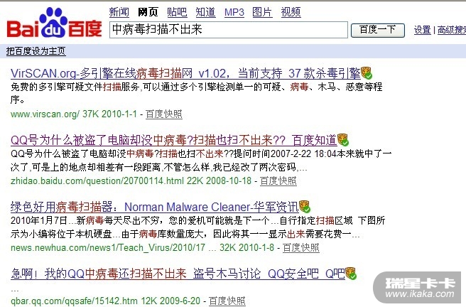 上百度搜索很多网站包括瑞星的链接被指向雅虎,而且莫名其妙出现很多瑞星确认的符号