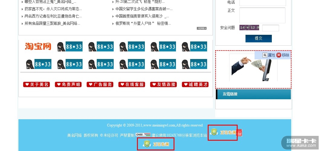 换域名后 网站显示2个瑞星的监控图标