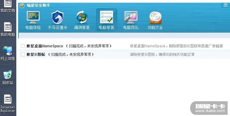 用“瑞星安全助手”系统修复后重启系统桌面图标异常。可是“瑞星安全助手”对系统扫描后还认为是正常的。晕!!!