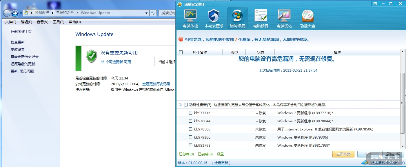 这个问题貌似是老毛病了。卡卡安全助手就有这个问题,现在的瑞星安全助手依然有此问题————WINDOWS update 没提示的补丁,助手依然扫到。一般用户会晕:微软的补丁信息准确,还是瑞星安全助手的补丁信息准确?