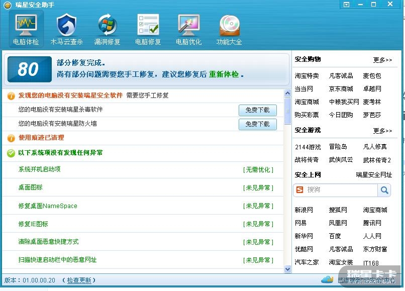 我明明装了瑞星全功能软件,为什么还会提示未装杀毒软件和防火墙