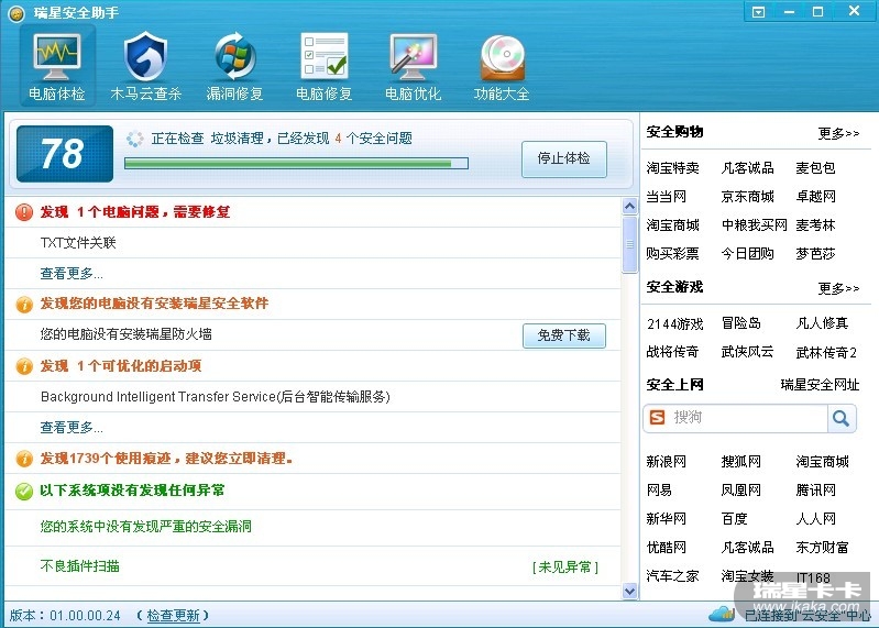 3.瑞星安全助手版本。