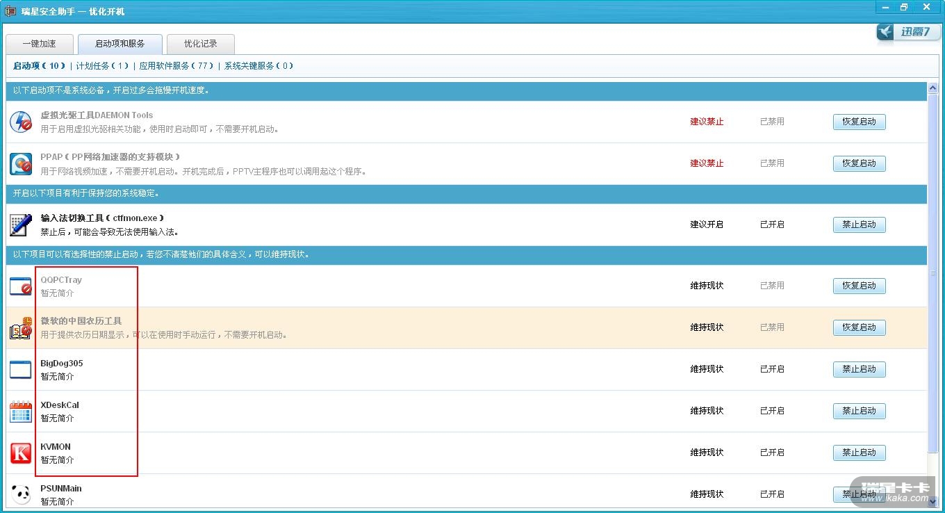 优化开机_恢复卡卡助手启动项管理关于启动项的描述