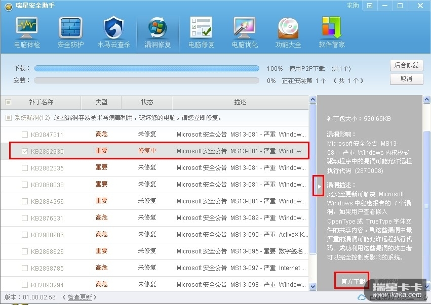 在微软官网下载这个补丁安装后重启电脑,在启动中途就卡住了,一直什么都不起作用,最后硬关机再重新启动了一次后就好了,但不知道这是为什么,是不是这个漏洞的原因?一直有点担心啊。目前助手漏洞已经完成修复了。
