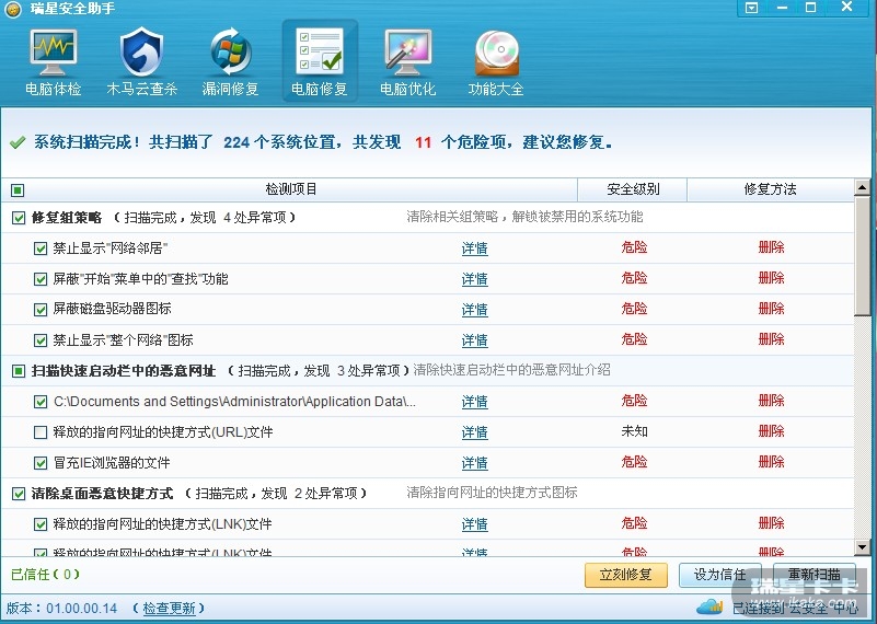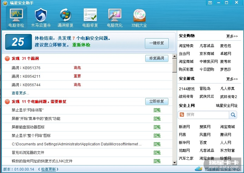 所以我建议瑞星优先检测IE,然后在下载IE的安全更新!