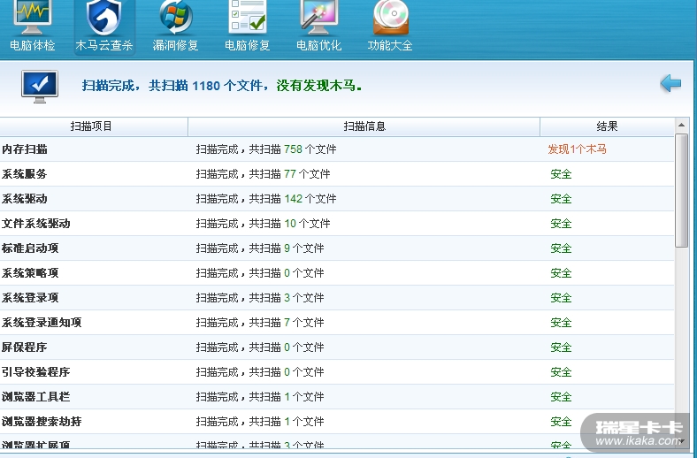 之后我用瑞星杀毒扫描没有发现木马。真怀疑瑞星助手的作用?????