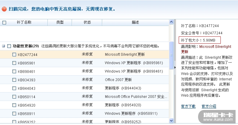 建议安全助手漏洞修复增加每个漏洞补丁大小的提示。