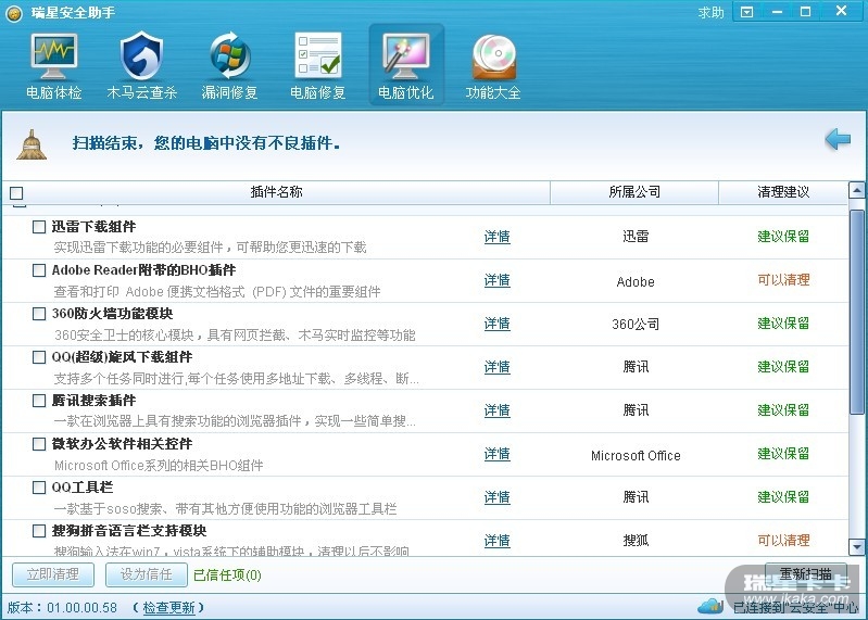我的360安全卫士早几个月前就卸载了,瑞星安全助手(版本:01.00.00.58)没提示删除360残骸?还建议保留?
