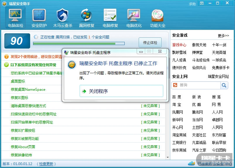 回复: (01.00.01.12版还存在)01.00.01.11版在系统启动后,点击“立即体检”,出现错误,...