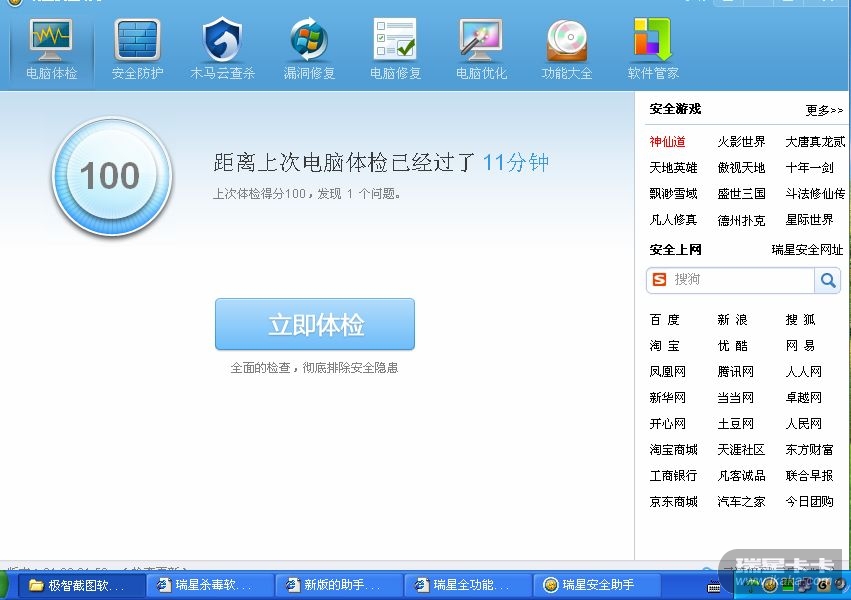 可以稍微小一点,另外主界面右侧的安全网址实在是鸡肋,建议尽快改成功能的快捷键或其它,还有“距离上次电脑体检已经过了x天”的字体十分不清晰