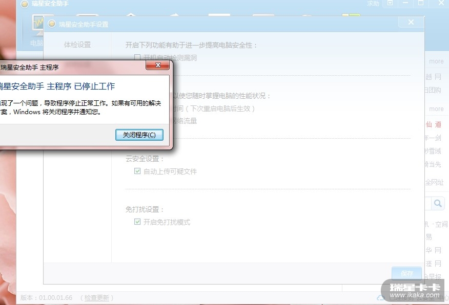 请将瑞星安全助手升级至最新版本(01.00.01.66)查看。
