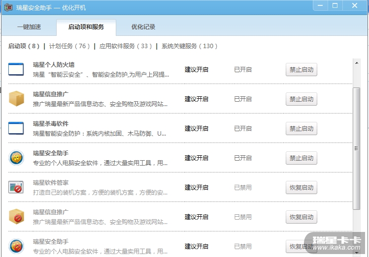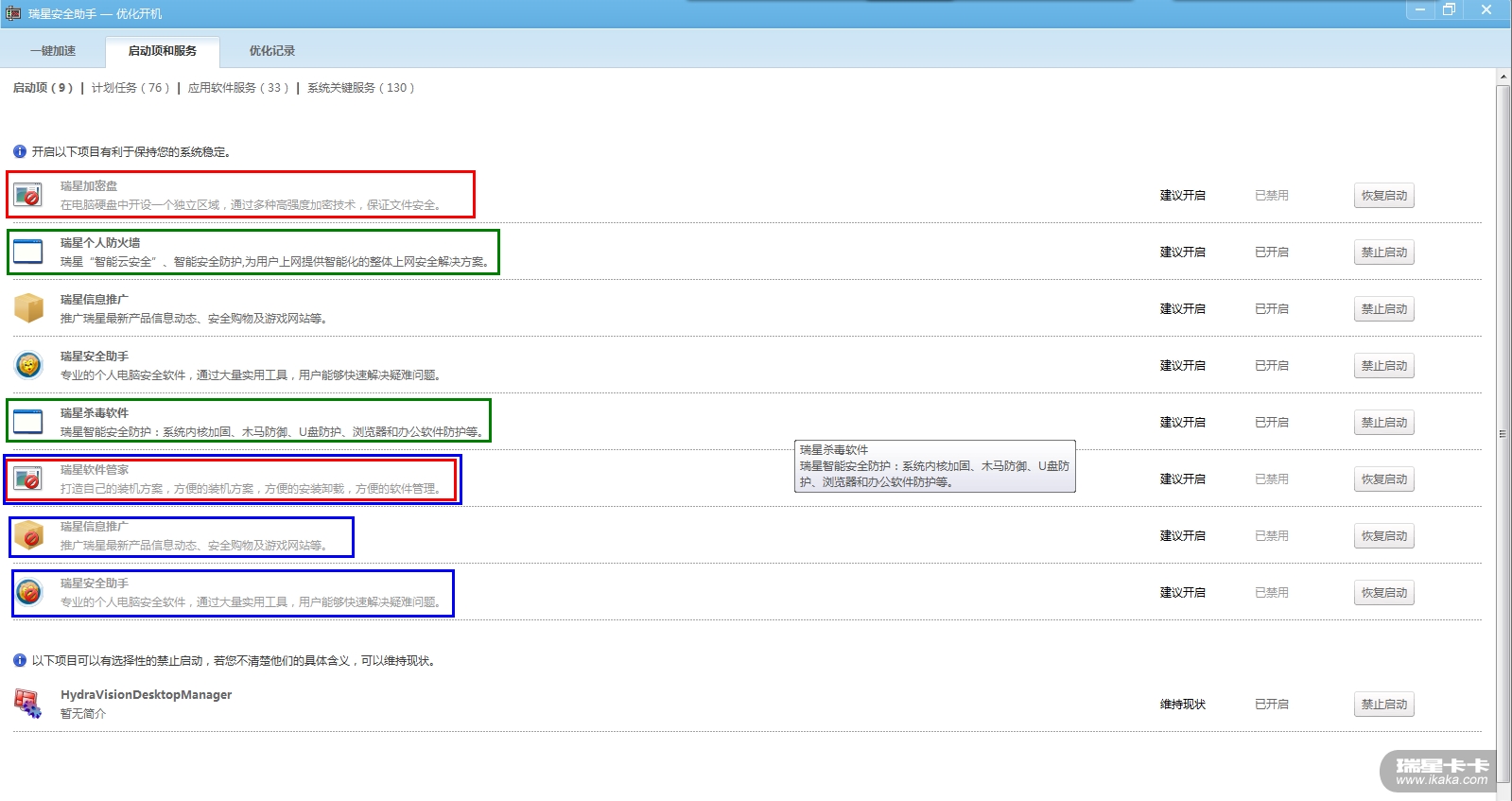 现象为原先卸载RSA前曾优化过,设置图中下部的3进程不随机启动。