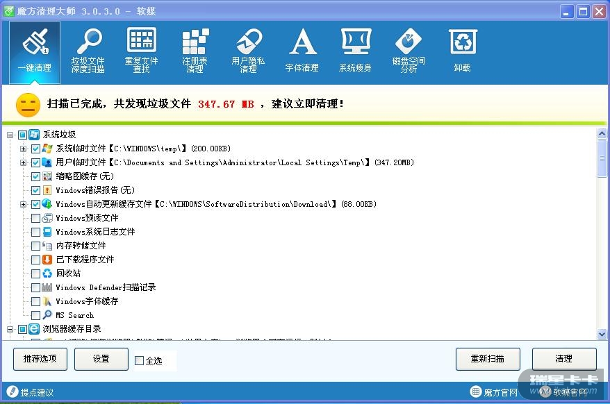 为什么魔方扫描出来的垃圾文件这么多,而瑞星扫描的垃圾文件这么少呢?