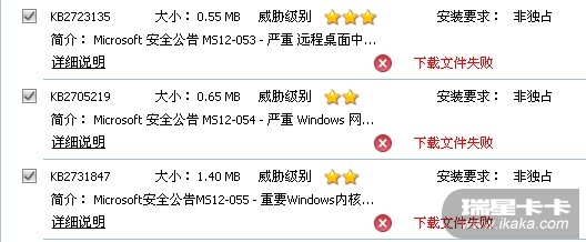 3个补丁KB2705219,KB2723135,KB2731847 一直下载失败,见其他帖子工程师回复,补丁右侧应该有官方下载的手动按钮,但软件中见不到