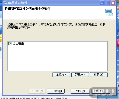 升级完成安装后首先提示卸载金山毒霸!悲哀!