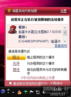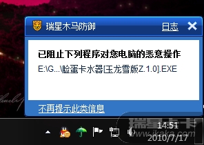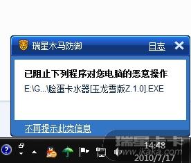 2.再运行一次。(注:以下瑞星提示均按时间顺序截取,过后与日志对比可看出问题)