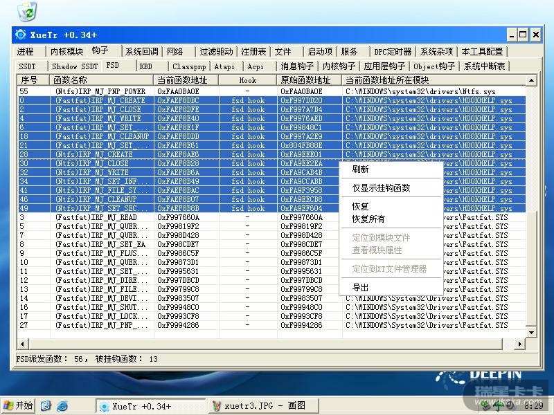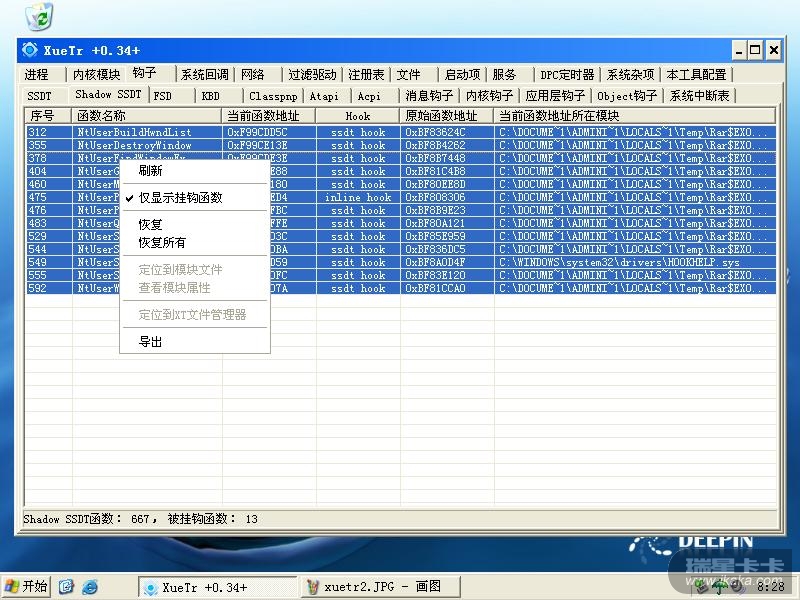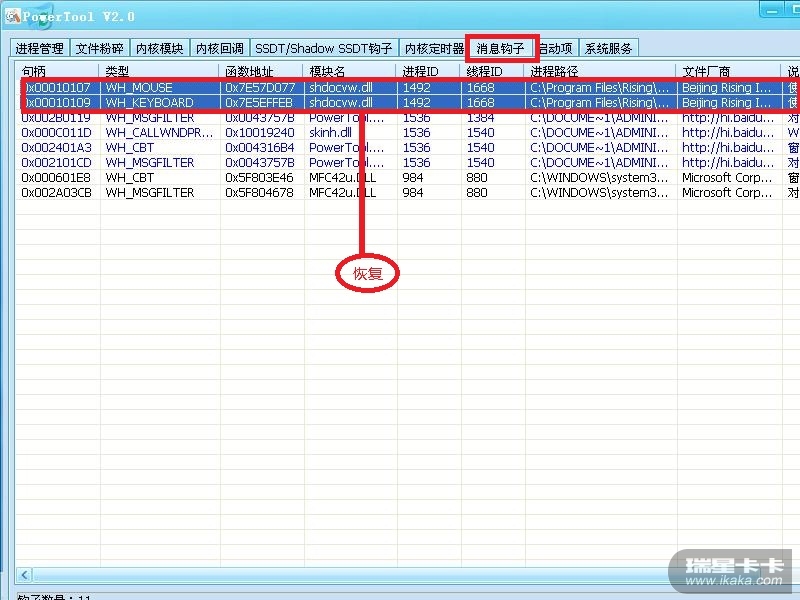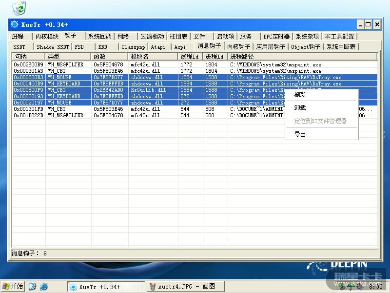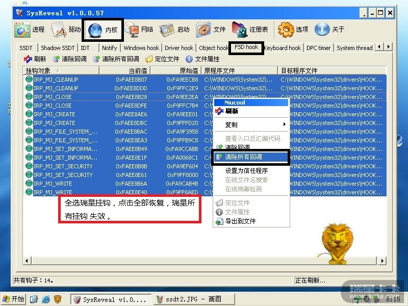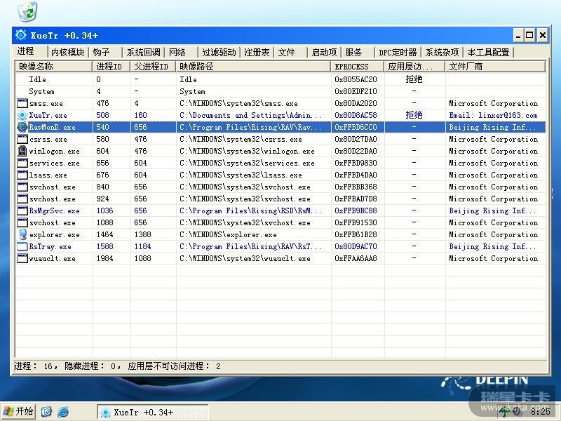 瑞星再一次败在了 进程管理 挂钩 ,xuetr能轻松删除瑞星的文件(文件管理)