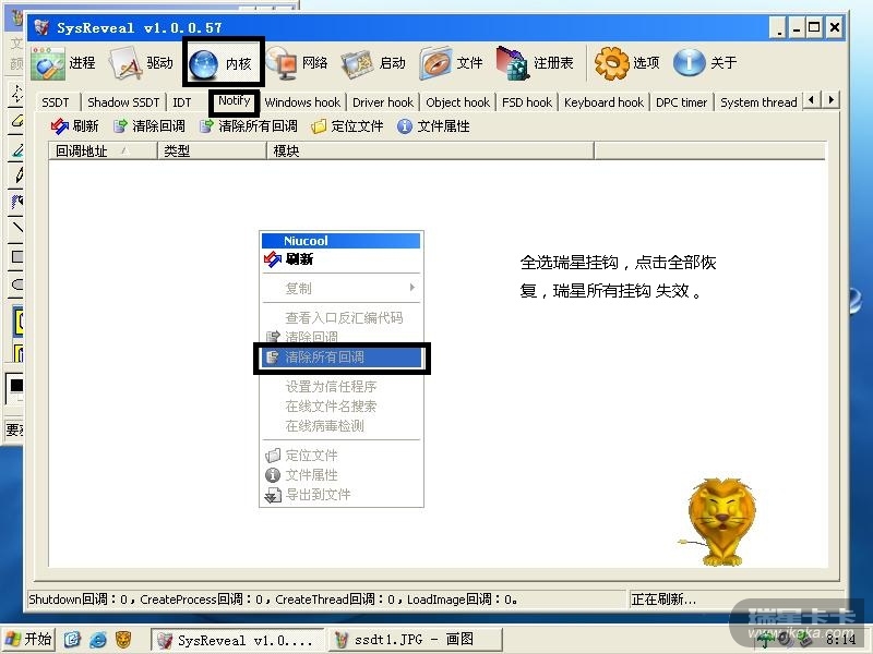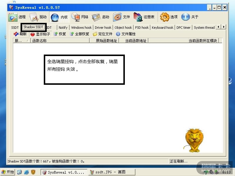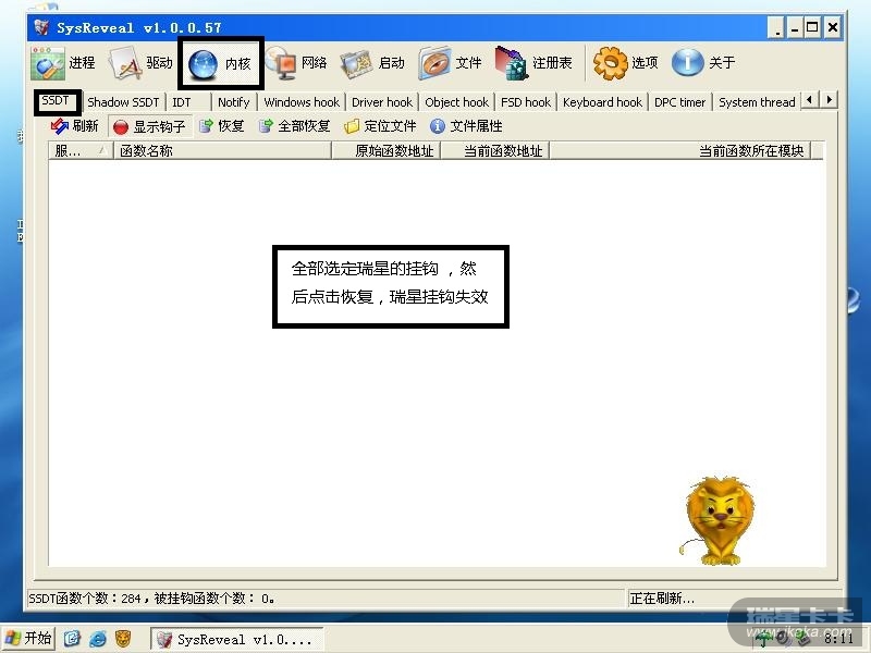 与第一款软件相同,瑞星又在挂钩方面 全军覆没!!!