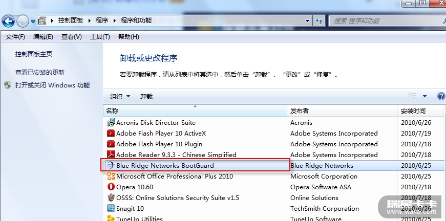 这个bootguard是 blue ridge公司的一个免费工具。前一阵子“鬼影病毒”流行时,我装在电脑中做防护用的。安装后,运行过三个鬼影样本,bootguard全部防住了。