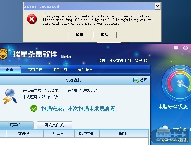 [疑似bug] 电脑启动瑞星自动杀毒后弹出
