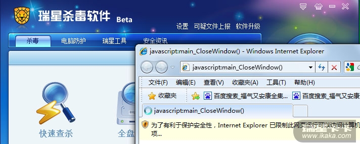 [疑似bug] 关闭瑞星界面时偶尔探出IE窗口
