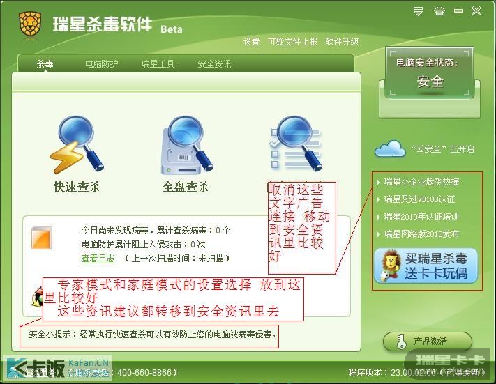 有关瑞星2011的一处设置建议 以及一个有关于界面的建议