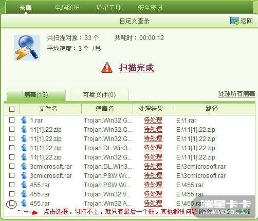 扫完毒后,最后一行选框点了没反映,无法正常打上勾,其他都能打上,如图,系统XPSP3,问题必现