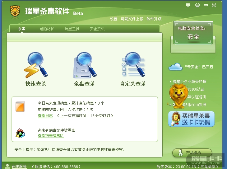 附:瑞星2011界面
