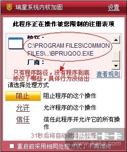 之前看到也有网友提了提示框建议,我也来说说吧,现在的提示框虽然比10版小很多,但是触发规则后,提示中有程序路径,但是没有这个程序的具体行为,只查看规则,不知道具体行为如何让用户做出判断,建议防御提示框内给出程序的详细行为,到底修改了什么,现在只能通过日志中查看程序详细行为,还有建议提示框在稍微大点就好了,现在的提示框太小了,以上是个人建议,希望工程师能考虑下!