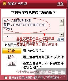 木马行为防御提示,我点查看文件,照理应该是找到文件所在地方,打开磁盘,但是尽然显示的还是文件,路径,厂商,不知是不是BUG,工程师看看,如图