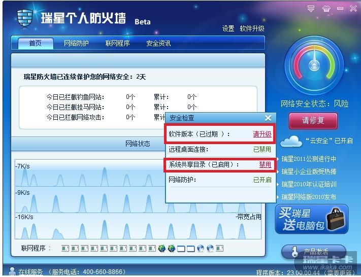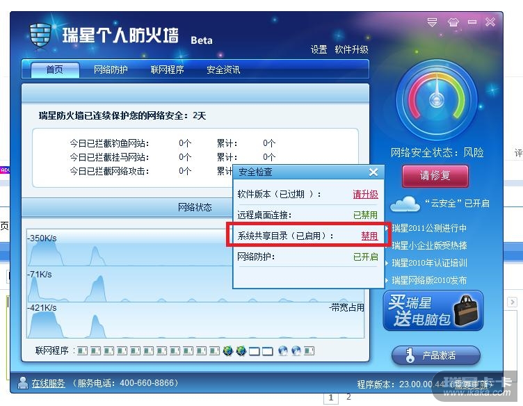 图中圈画部分实际已经解决,可是瑞星防火墙依旧反映有问题。