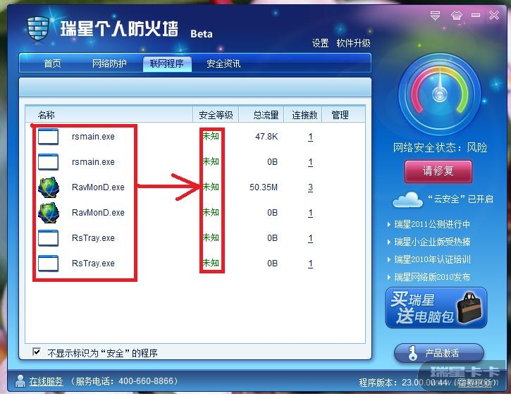 【瑞星个人防火墙】——联网程序“未知”项的Bug