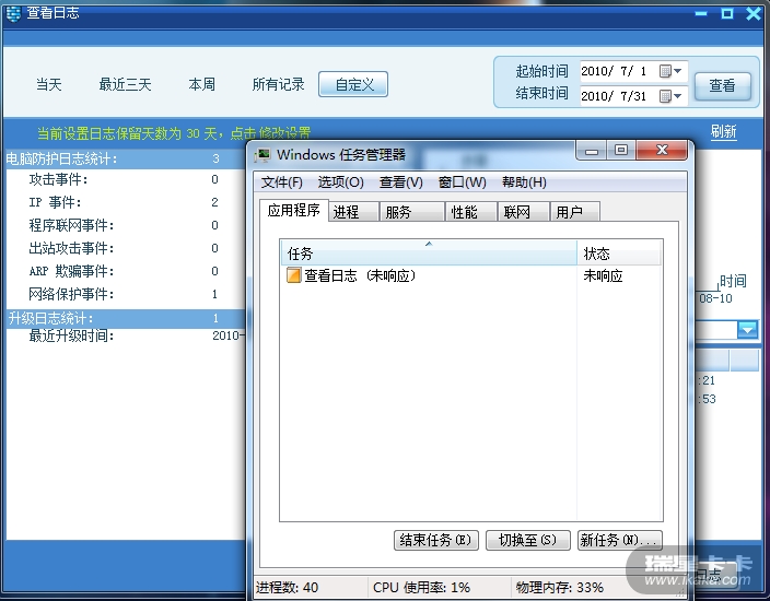 问题现象:点击查看日志后界面无故卡死,只能通过任务管理器强制关闭