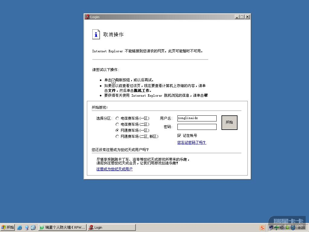 系统sp3 刚做完系统 打开跑跑卡丁车进不去 显示连接不到网络,把瑞星防火墙关掉就可以玩了