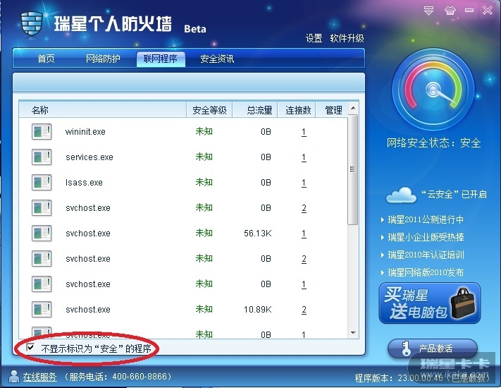 瑞星软件版本:防火墙23.00.00.46