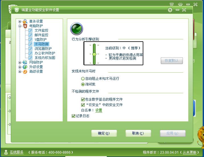 [意见建议] 【电脑防护】中的木马防御的默认级别问题