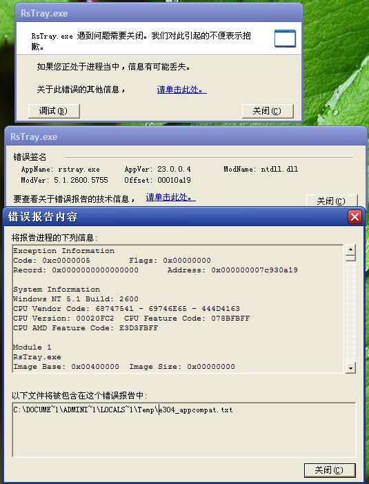 【RsTray.exe】RsTray.exe报错退出,约5分钟才能重新启动进程