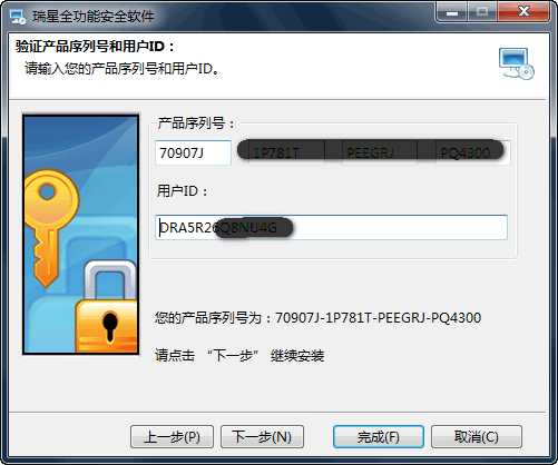 目前瑞星全功能安全软件2011有两个版本的安装程序,一个是正式测试以前出来的版本,版本号23.0.2.42,这个安装时显示内置的序列号;一个是20100729出来的正式测试版本,版本号23.0.4.1,这个安装时无序列号显示。