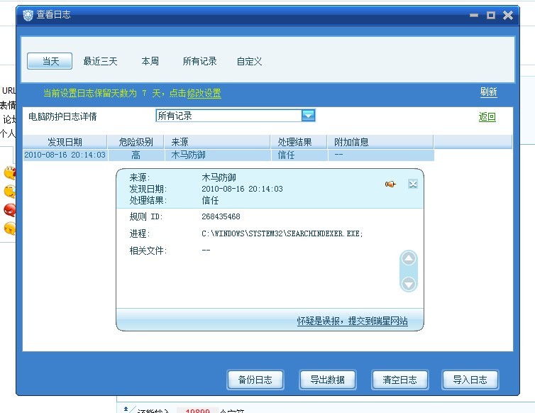 本人家里的操作系统是WIN7,2011版木马防御级别设置为中级,版本已升级至最新,这几天瑞星总是报Microsoft Windows Search 索引器:SearchIndexer.exe为未知木马。