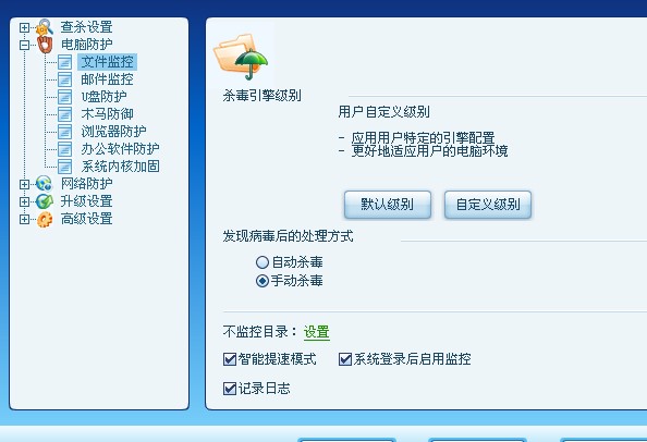 升级到新版本后,瑞星设置里的“发现病毒的处理方式”就会从“自动杀毒”改为“手动杀毒”。快速查杀、全盘查杀、文件监控”等全部都改为了“手动杀毒。遇到过好多次了,
