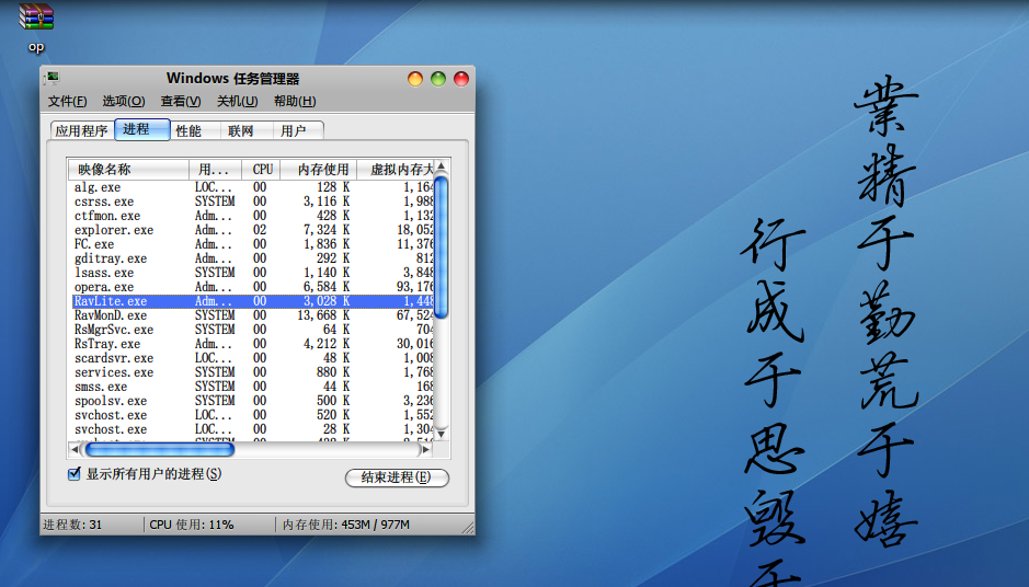 出现问题前的操作步骤:右键扫描某压缩文件(里边是一个RIS的日志备份文件),无任何反应,任务管理器可以看到有一个ravlite.exe,再次按右键扫描,依然无反应,第二个ravlite.exe出现,第三次按右键扫描,出现Ravmond.exe遇到问题需要关闭的提示框,任务管理器中可以看到第三个ravlite.exe,关闭提示框后三个进程同时消失,Ravmond.exe随之消失,然后再次出现,此时右键扫描,可以看到小型扫描进度框,一切正常。此bug与昨天发的