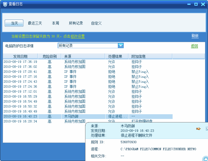 今天使用网页右键菜单调用迅雷下载时,瑞星木马防御弹出如下提示: